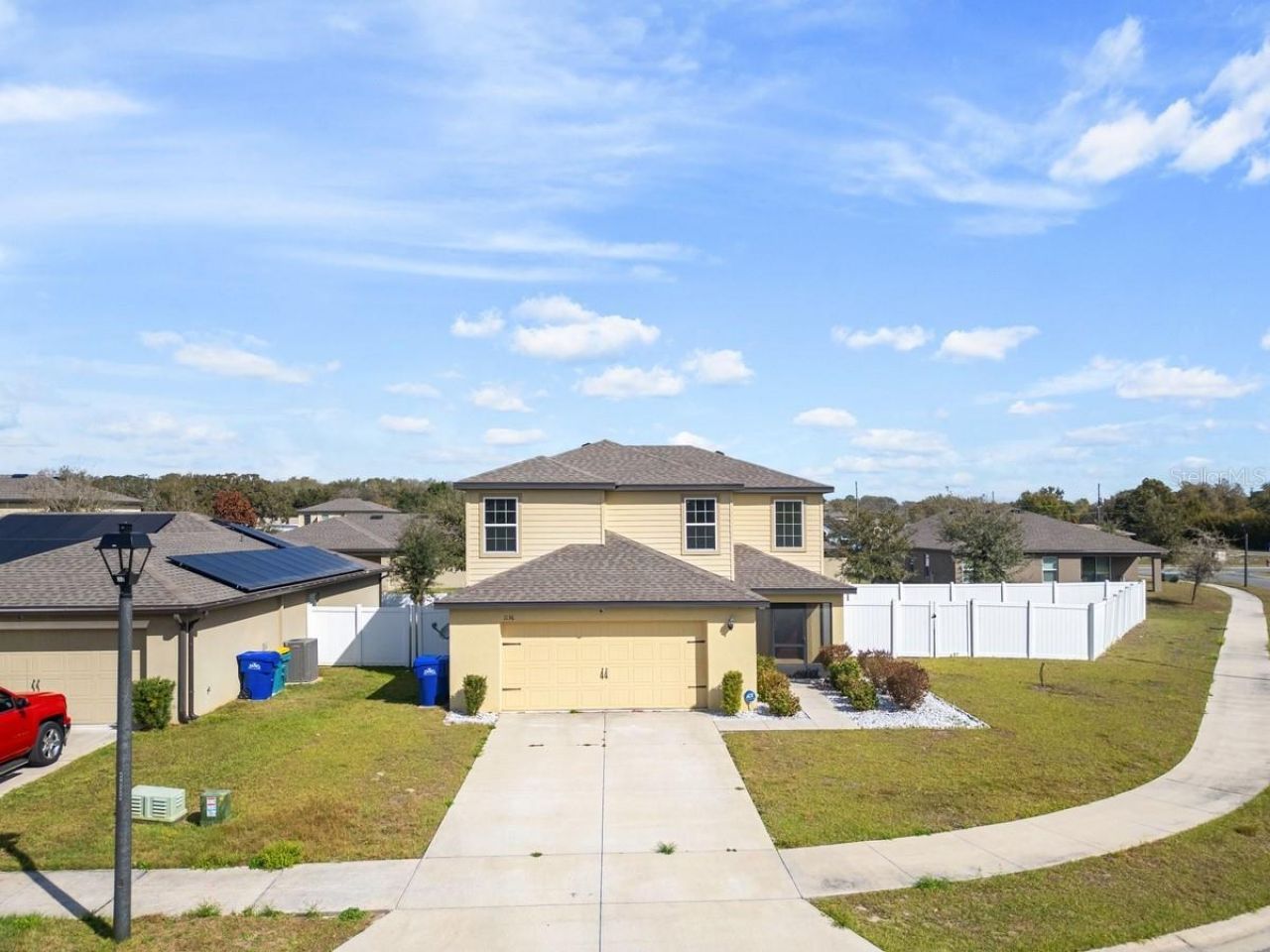 You will absolutely love this beautiful single-family home located on an oversized lot in a small enclave of homes in the lakefront community of Dora Lake Estates. This two-story home with a modern open floor concept offers 3 bedrooms, 2.5 baths with an oversized 2 car garage. A comfortable living room connects with the dining area and kitchen, perfect for gatherings or entertaining. The chef in the family will appreciate the beautiful kitchen featuring granite counter tops, plenty of cabinets for storage and all stainless-steel appliances. The second level accommodates all three bedrooms for additional privacy. The primary bedroom offers a large walk-in closet and en suite bathroom. All bedrooms have carpet flooring. You will relax in the comfort of the insulated screened back patio while you enjoy your morning coffee. You and your 4-legged friends will love the privacy of the fully fenced backyard. Enjoy worry free living with the installed Generac generator. Built in 2021, this home is definitely a must see.