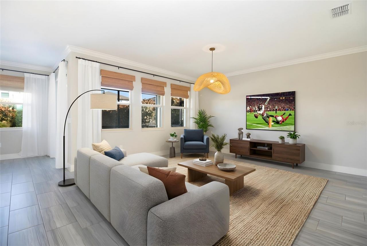 Welcome to this impeccably maintained 2021-built home located in the highly sought-after Bexley community of Land O' Lakes. Offering 4 bedrooms, a spacious loft, and 2.5 baths, this residence features a thoughtfully designed layout ideal for modern living. The first floor showcases elegant wood-look tile, creating a seamless flow through the open living, dining, and kitchen areas-perfect for both everyday comfort and entertaining.The kitchen is a true showpiece, highlighted by a large center island, striking Calcutta marble backsplash, and abundant cabinetry. Designer lighting elevates the space, including an Arhaus rattan chandelier in the living area and premium Cync smart lighting throughout the home, easily controlled via the Cync app. Additional luxury touches include imported French wallpaper by Ananbo and motion-sensor lighting in select rooms for added convenience.Upstairs, all bedrooms are privately situated alongside a versatile loft and a convenient second-floor laundry room. The primary suite offers a spa-like retreat with Moen bath fixtures, rainfall shower head, a West Elm designer light fixture, and a custom-designed walk-in closet by The Container Store. Lulu and Georgia alabaster sconces add warmth and sophistication to the bedroom, while cordless blackout shades provide comfort and privacy throughout the home.This home is enhanced by major system upgrades, including a whole-house salt-free water filtration and softening system with reverse osmosis by One Green Filter, as well as a top-of-the-line UV air purification system-Bayonet's X Patriot-for improved indoor air quality.Step outside to enjoy a screened lanai and paver patio overlooking a fully fenced backyard, beautifully landscaped with pink hibiscus and clusia privacy hedges, creating a serene and private outdoor setting.Residents of Bexley enjoy resort-style amenities including pools, fitness centers, parks, scenic trails, and access to top-rated schools, all with convenient proximity to major roadways, shopping, and dining. This move-in-ready home perfectly blends upscale finishes, thoughtful upgrades, and an exceptional community lifestyle. More than one pic. has been virtually staged.