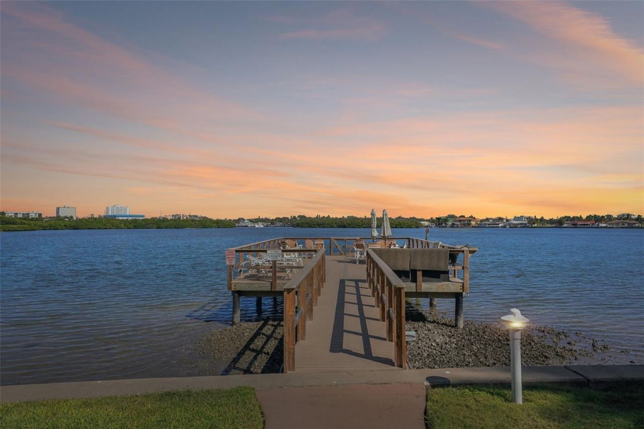 Experience the ultimate Florida lifestyle with this beautifully updated maintenance free 55+ waterfront condo in the heart of South Pasadena. From the moment you wake up, you are greeted with stunning panoramic views over Boca Ciega Bay that follow you from the kitchen sink all the way through the living space and into the sunroom. This 1050 square foot condo features 2 bedrooms and 1 bathroom and has been thoughtfully updated for peace of mind and comfort. The living room showcases custom built-ins and opens to a window lined sunroom that creates the perfect place to relax while watching dolphins glide by. The primary bedroom offers an oversized walk in closet for easy organization and storage. Recent improvements include the installation of hurricane impact windows in the sunroom in 2024, along with solar shades for added comfort and efficiency. Storm shutters were added to the kitchen and bedroom windows in 2005, and new blinds were installed in the kitchen and foyer in 2022. The AC and heat system were replaced in 2020, and a new energy star refrigerator was added in 2023. These thoughtful upgrades showcase the consistent care and attention given to this condo. This condo includes its own assigned parking space with plenty of guest parking available. The Shore Crest community provides an unmatched waterfront lifestyle with a wide array of amenities including two heated pools, a clubhouse, fitness center, library, shuffleboard courts, a kayak launch, extensive waterfront seating areas, gas grills, and two fishing piers including a newly completed pier in 2023. Shared storage areas on each floor make it easy to store beach gear and bikes. This active 55 plus community does not allow pets or rentals which creates a peaceful atmosphere and a friendly neighborhood feel. All milestone inspections were completed and funded in 2023 and a fully funded roof replacement was completed in 2025 for added peace of mind. Residents enjoy two laundry rooms in the building, one on the first floor and another conveniently located on the fifth floor. The location is truly unbeatable with walking distance access to two marinas for chartering a boat, nearby shopping, dining, a winery, bowling, and the popular St. Pete Beach Sunday Market. With the Sunrunner bus just minutes away, you can leave the car behind and enjoy easy transportation to downtown St. Pete or St. Pete Beach. Schedule your showing today and experience firsthand everything this exceptional waterfront community has to offer.