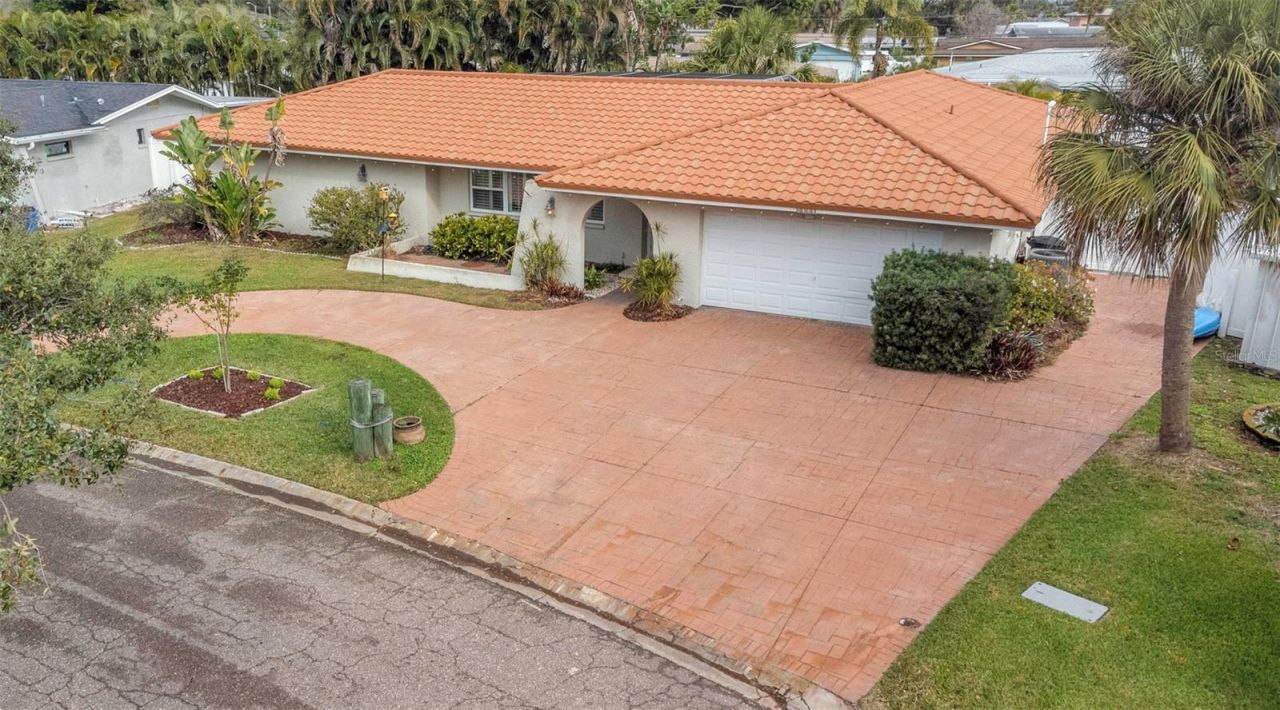 Bright, open and expansive don't begin to describe this outstanding Maximo Moorings beauty. More than 2300 sf of living space awaits at this stellar Florida oasis with gorgeous in-ground pool, outside deck and plenty of yard space for gardening or games. Just a hop, skip and a jump from St Pete Beach and Tierra Verde, Eckerd College, access to I-275 into downtown St Petersburg or over the Skyway Bridge. This stunner has new roof (2025), newer HVAC (2024) and hot water heater (2024). The open concept living room-kitchen area (new dishwasher 2025) features a huge wrap-around, granite counter that makes a wonderful space for entertaining. Sliding doors lead to the covered patio and enclosed pool area (recently re-screened), which features an outdoor kitchen area. You'll be thrilled with the huge primary bedroom suite (14 x 26 sf!!) that also has sliding doors to the patio area and features large, double-walk-in closets, separate toilet room, double sinks, and walk-in shower. Split-bedroom plan puts the other two bedrooms on the other side of the house, giving everyone a bit of privacy. Hall bathroom features a tub-shower and access to the swimming pool area. Separate formal dining room also has sliding doors to the patio, making this home ideal for indoor-outdoor entertaining and leisure activities. A large laundry room (washer and dryer will stay with the house) has plenty of cabinet space. A walk-in closet with built-in shelving in the rear hall area completes the package. Easy-care and durable ceramic tile flooring throughout. Large two-car garage has an electric vehicle charging station and exterior walk-out door. The brick-paver semi-circular driveway provides great off-street guest parking. Home DID NOT experience any flooding during 2024 storms. Room sizes approximate. Buyer/buyer agent to verify.